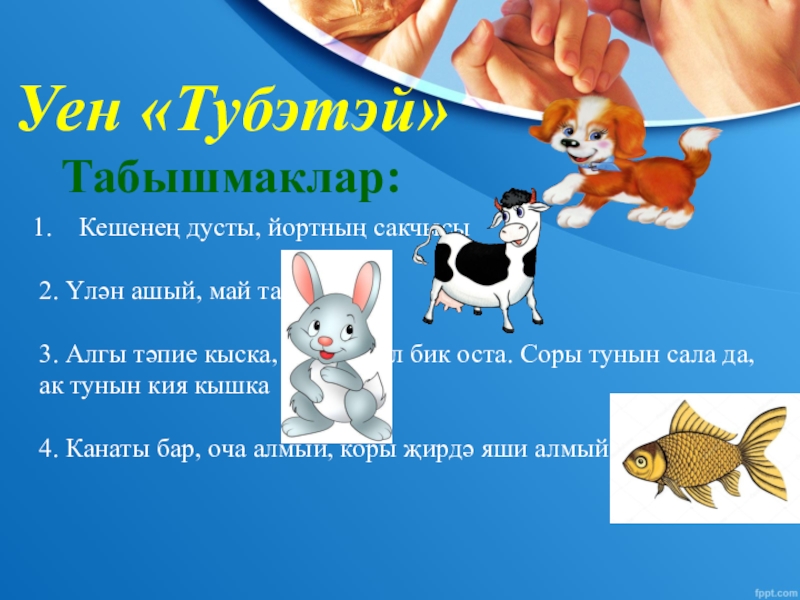 Слайд 85. Башы тарак, койрыгы урак, кычкыртып быргысын уята барысын