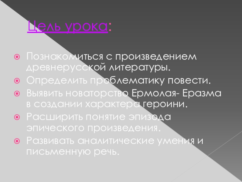 Муроме в начале Xlll века и умерли в 1228 году. Повесть написана на основе местной легенды о мудрой крестьянской девушке, ставшей княгиней.