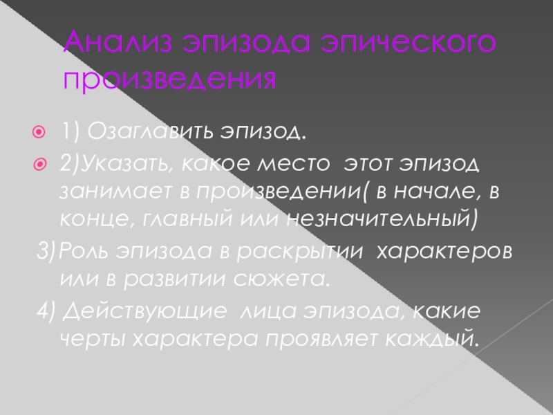 3)Роль эпизода в раскрытии характеров или в развитии сюжета.