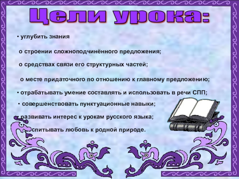 отрабатывать умение составлять и использовать в речи СПП;