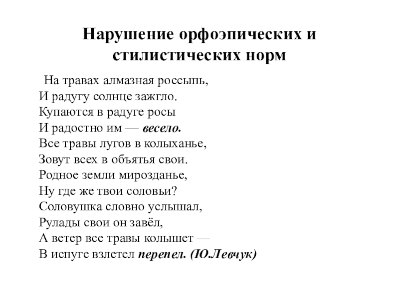 2. На основе анализа текстов произведений доказать, что в произведениях поэтов «перестроенной» России допускаются нарушения литературных норм языка.