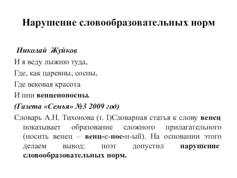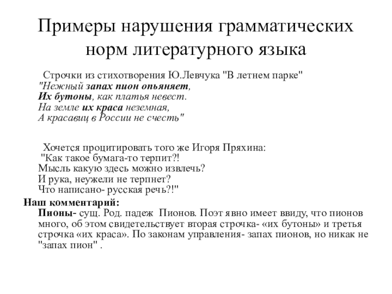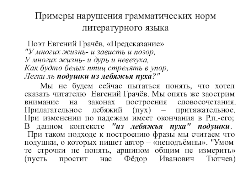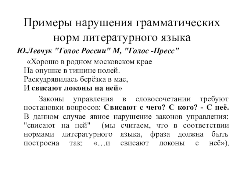 Слайд 18Примеры нарушения грамматических норм литературного языка