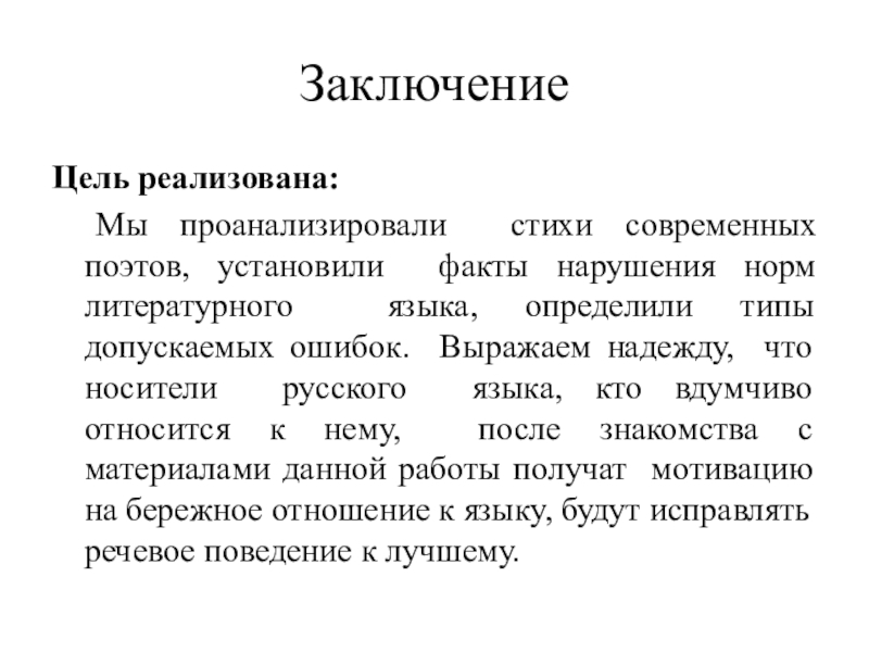 2. На основе анализа текстов произведений мы доказали, что в произведениях поэтов «перестроенной» России допускаются нарушения литературных норм языка.
