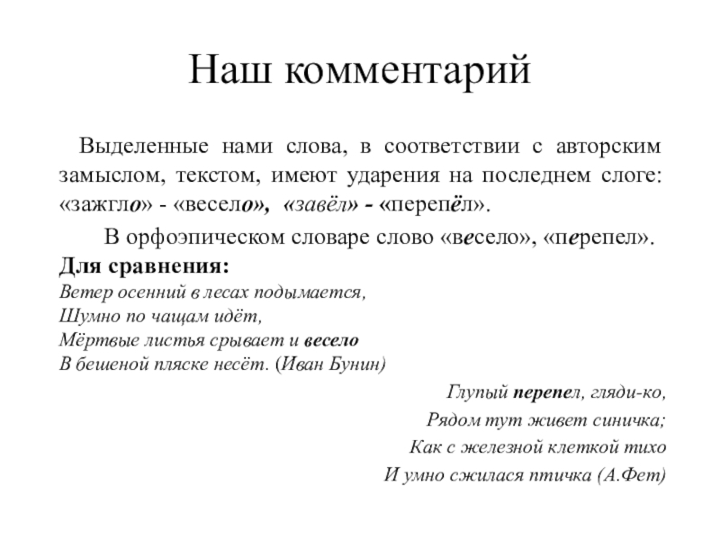 Выделенные нами слова, в соответствии с авторским замыслом, текстом,