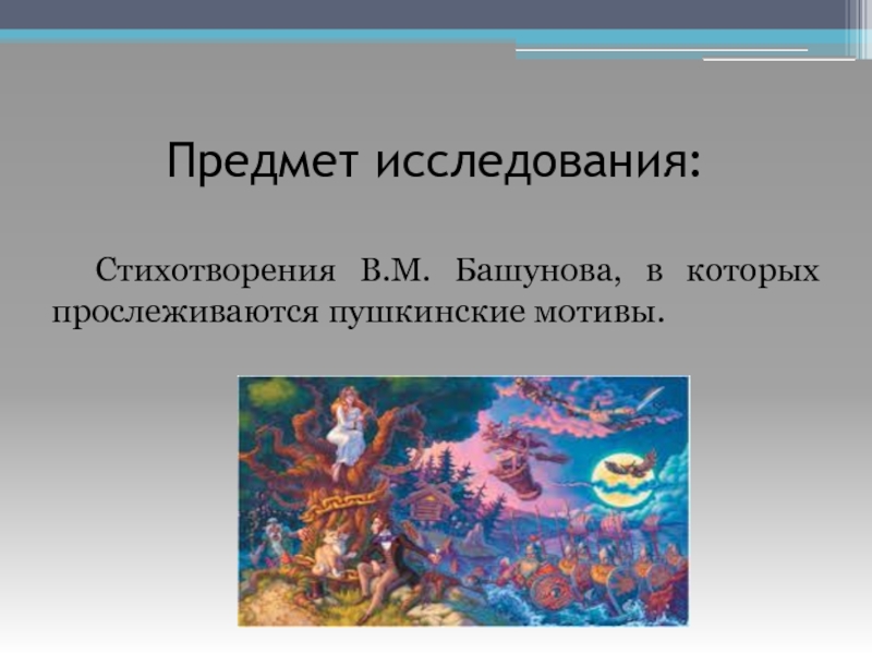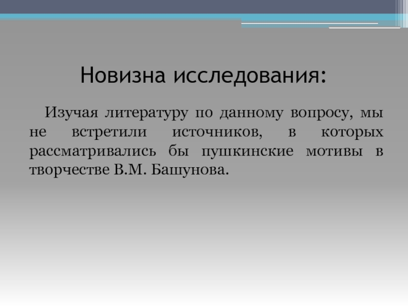 Рассмотрев пушкинские мотивы в творчестве В.М. Башунова, мы предполагаем определить
