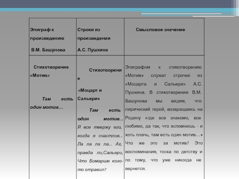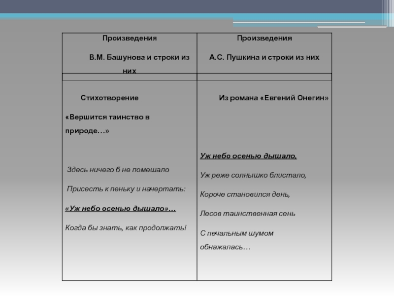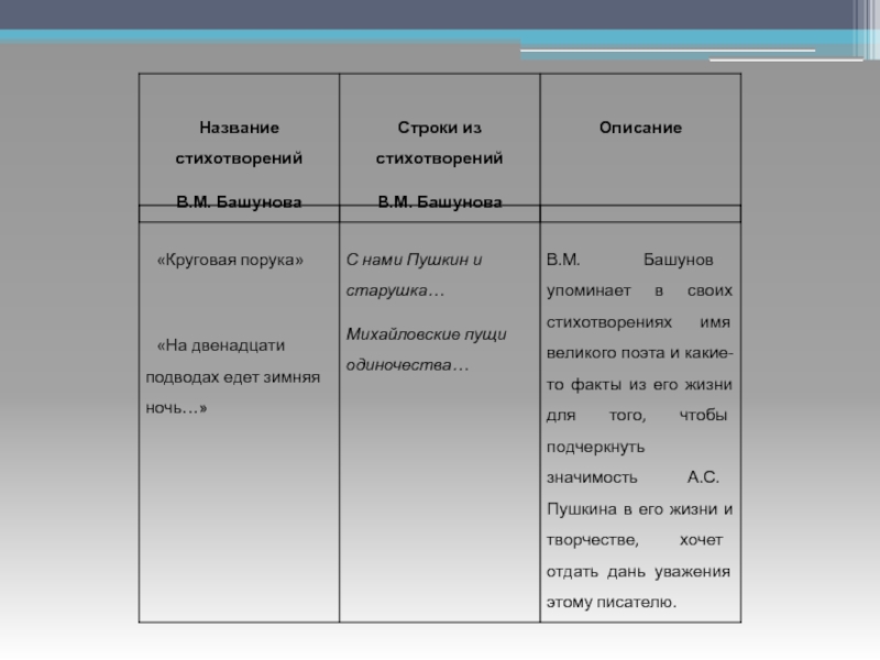 Стихотворения В.М. Башунова, в которых прослеживаются пушкинские мотивы.