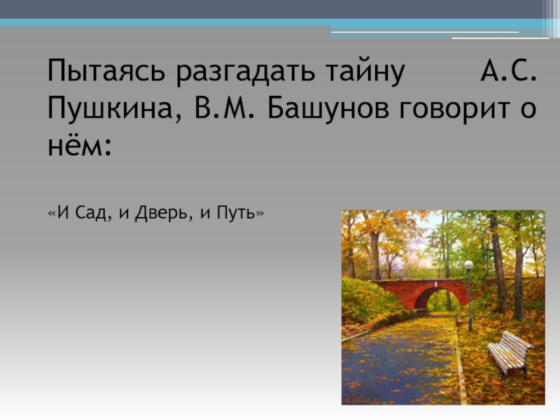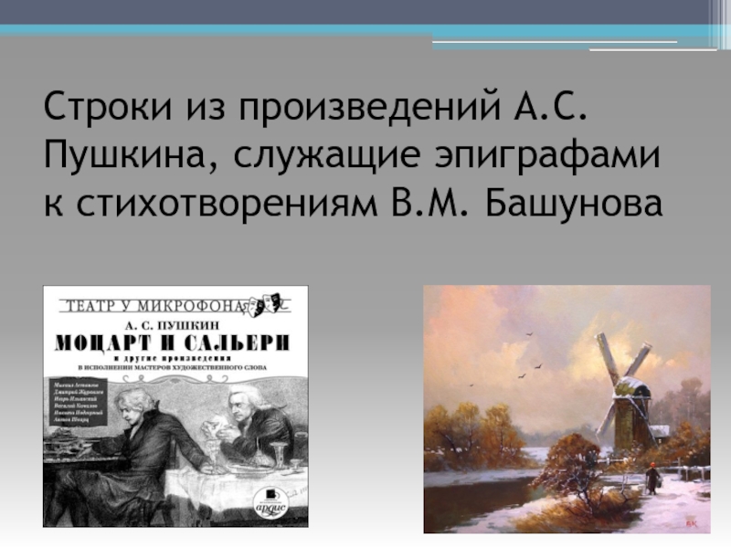 Слайд 15Пушкинские мотивы в творчестве В.М. Башунова