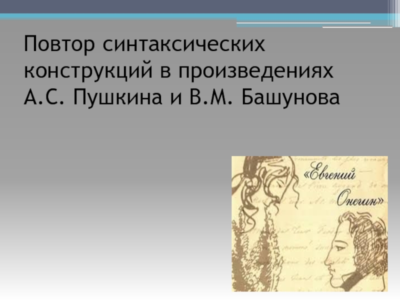 В.М. Башунов неоднократно использует синтаксические конструкции из произведений А.С. Пушкина. Это, на наш взгляд, тоже не случайно. Повторяясь в поэзии В.М. Башунова, каждая строчка великого писателя получает вторую жизнь, звучит по-новому.