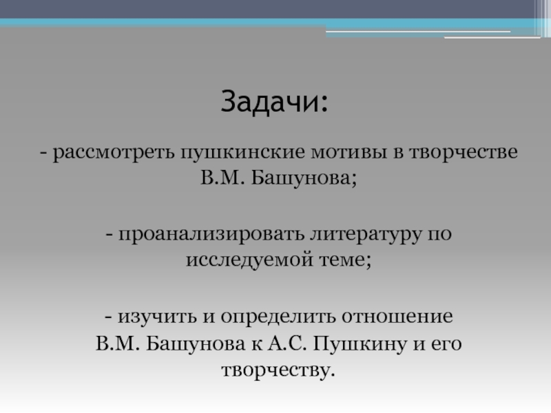 - рассмотреть пушкинские мотивы в творчестве В.М. Башунова;