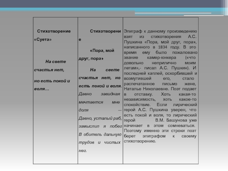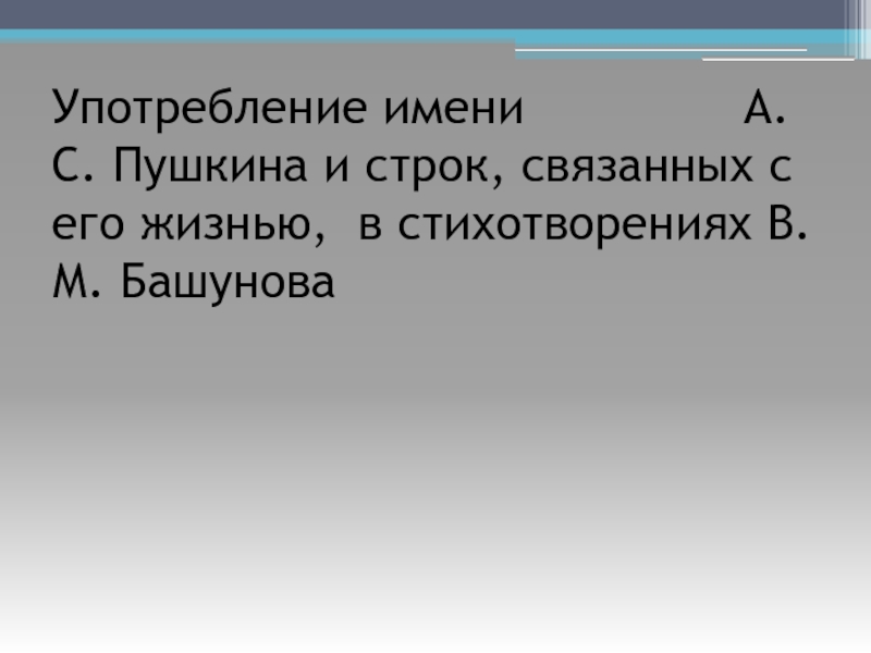 Слайд 27Строки из произведений А.С.Пушкина, служащие эпиграфами к стихотворениям В.М. Башунова