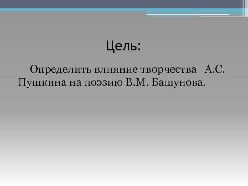 Определить влияние творчества А.С. Пушкина на поэзию В.М. Башунова.