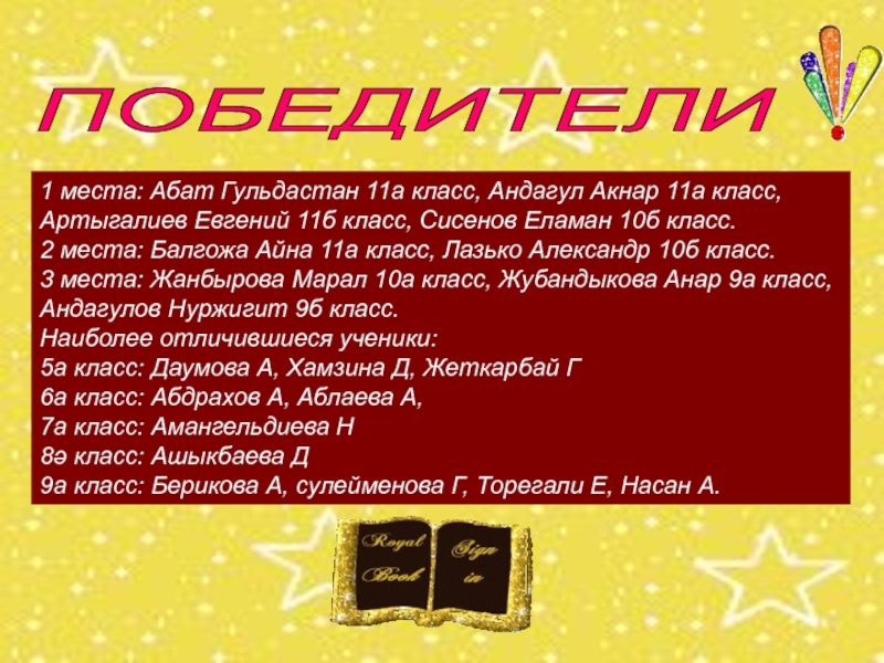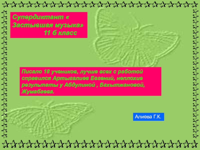 Писало 18 учеников, лучше всех с работой справился Артыгалиев Евгений, неплохие результаты у Абдулиной , Бахытжановой, Жумабаева.