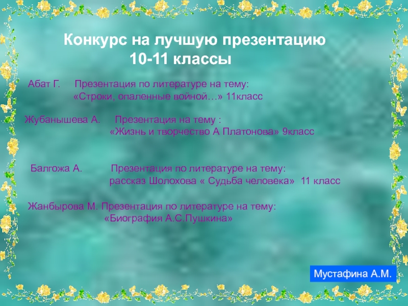 Это сайт презентаций, где можно хранить и обмениваться своими презентациями, докладами, проектами, шаблонами в формате PowerPoint с другими пользователями. Мы помогаем школьникам, студентам, учителям, преподавателям хранить и обмениваться учебными материалами.