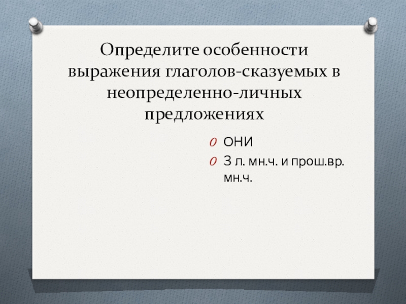 Слайд 4Определите особенности выражения глаголов-сказуемых в неопределенно-личных предложениях