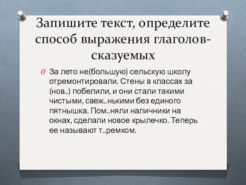 Слайд 3Запишите текст, определите способ выражения глаголов-сказуемых