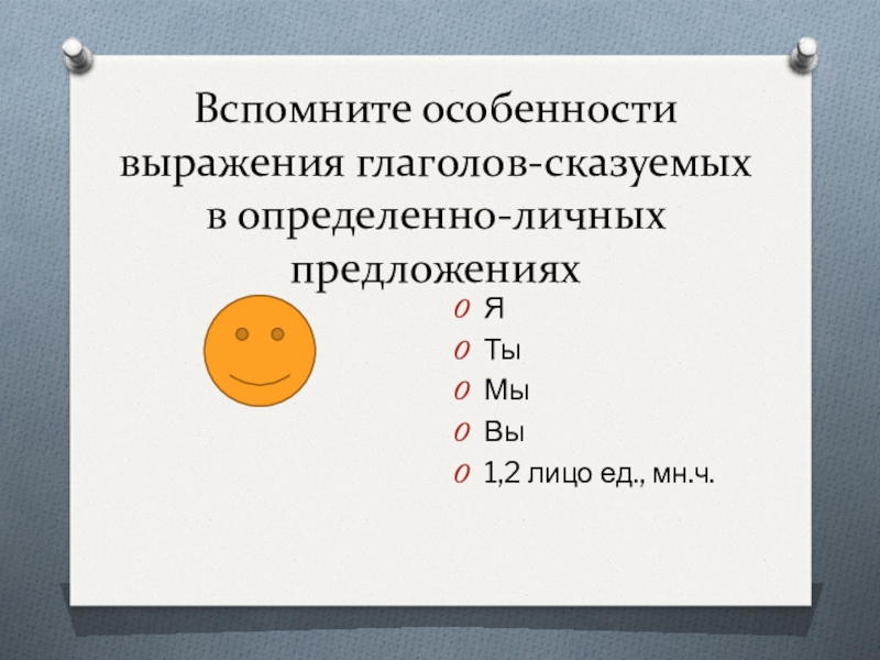 Слайд 2Вспомните особенности выражения глаголов-сказуемых в определенно-личных предложениях