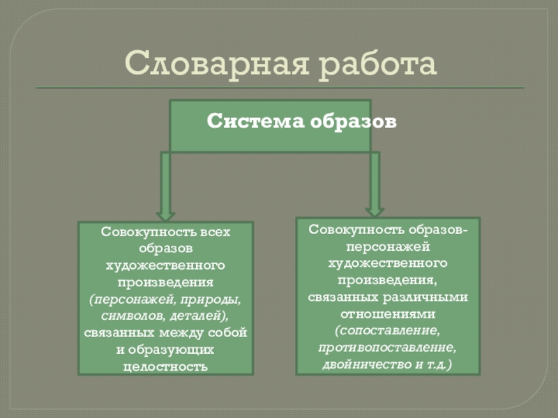 Совокупность всех образов художественного произведения (персонажей, природы, символов, деталей), связанных между собой и образующих целостность