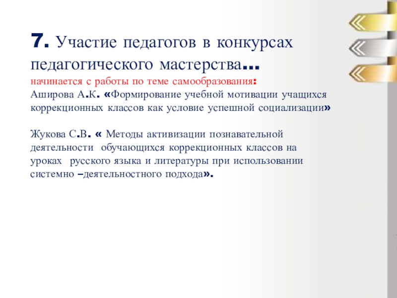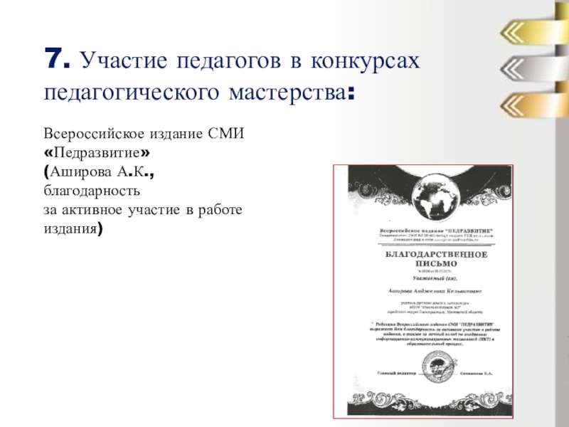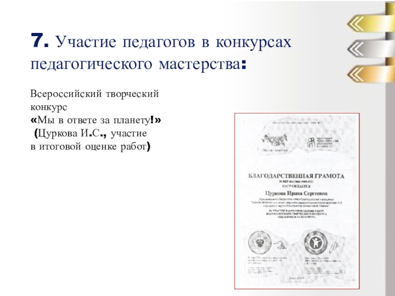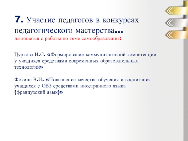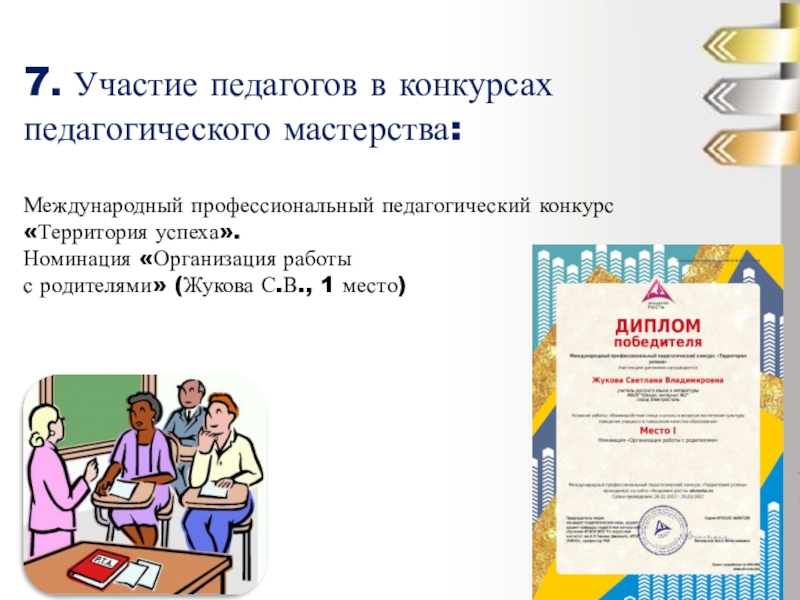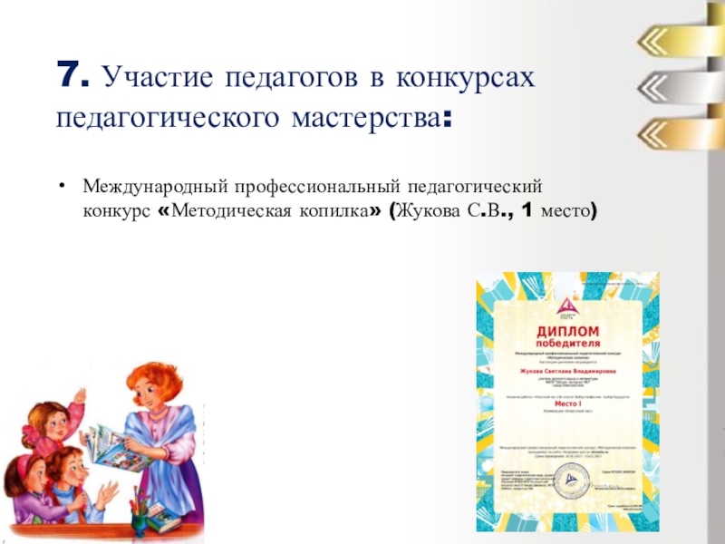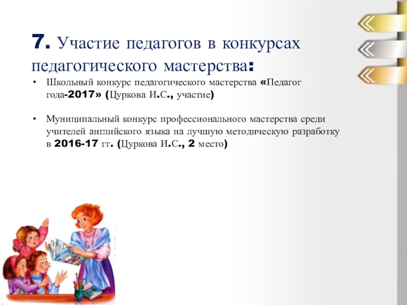Слайд 407. Участие педагогов в конкурсах педагогического мастерства:
