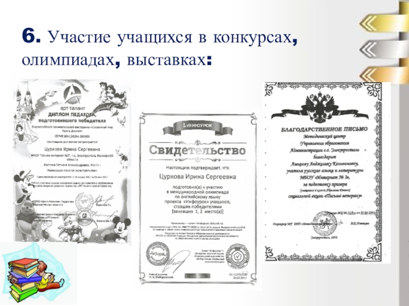 современных методов при обучении иностранному языку в средней школе» (Цуркова И.С.), Всероссийский уровень;