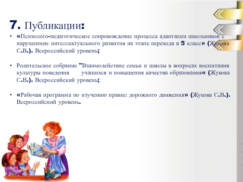 этапе перехода в 5 класс» (Жукова С.В.). Всероссийский уровень;
