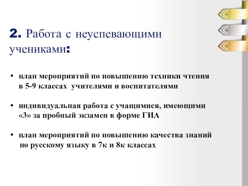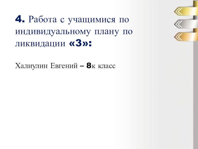 Слайд 224. Работа с учащимися по индивидуальному плану по ликвидации «3»: