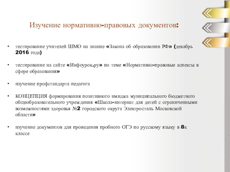 тестирование учителей ШМО на знание «Закона об образовании РФ»
