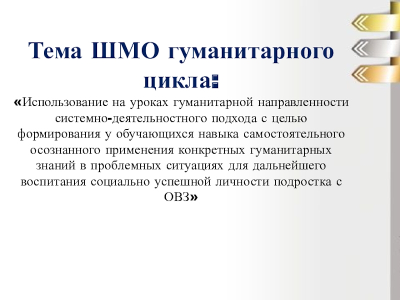 с целью формирования у обучающихся навыка самостоятельного осознанного применения конкретных гуманитарных знаний в проблемных ситуациях для дальнейшего воспитания социально успешной личности подростка с ОВЗ»