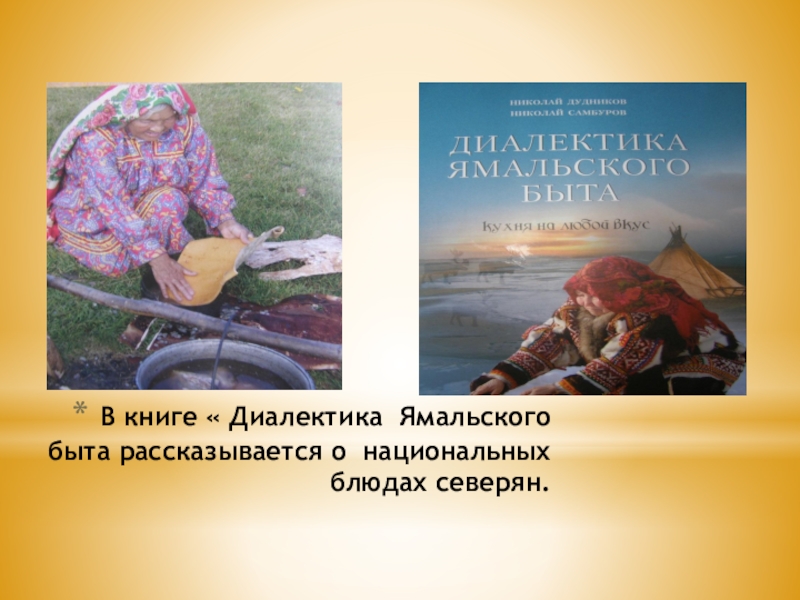 Слайд 8В книге « Диалектика Ямальского быта рассказывается о национальных блюдах северян.