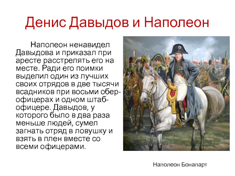 Наполеон ненавидел Давыдова и приказал при аресте расстрелять