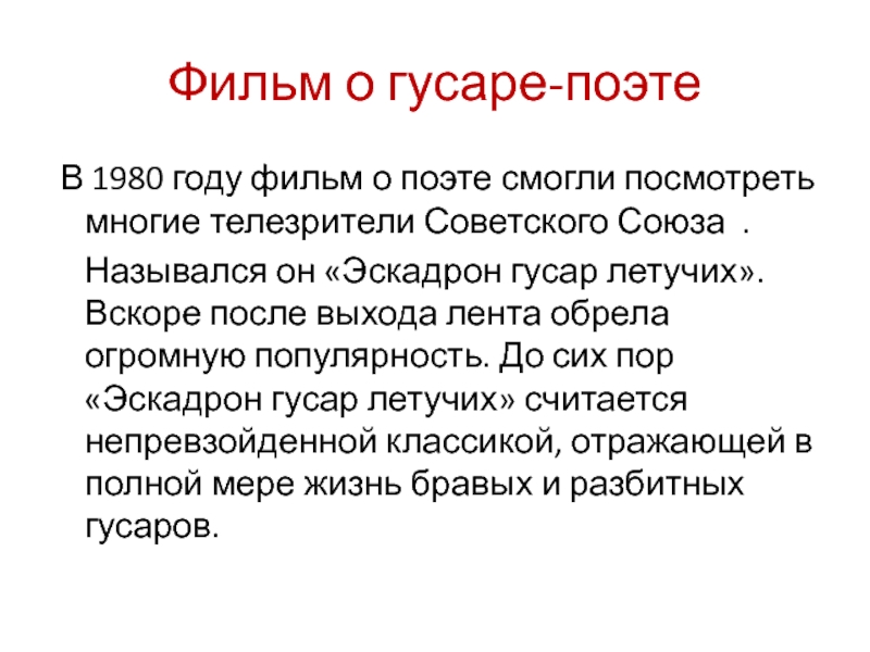 Слайд 27Фильм о гусаре-поэте
