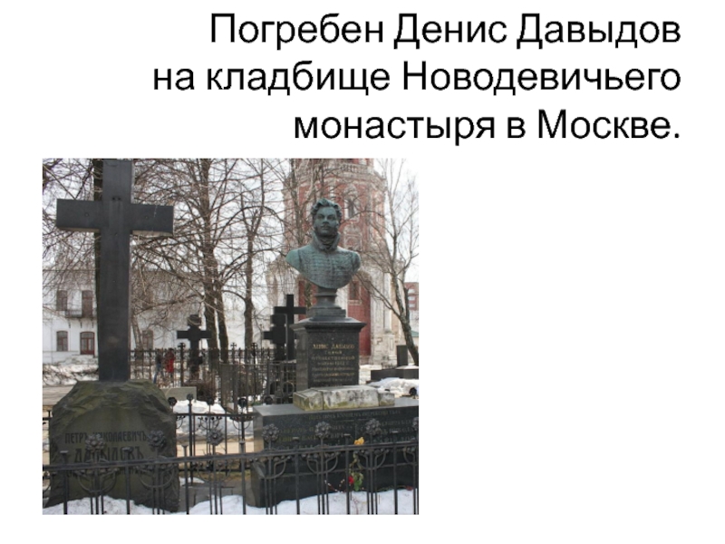 Слайд 25 Погребен Денис Давыдов на кладбище Новодевичьего монастыря в Москве.