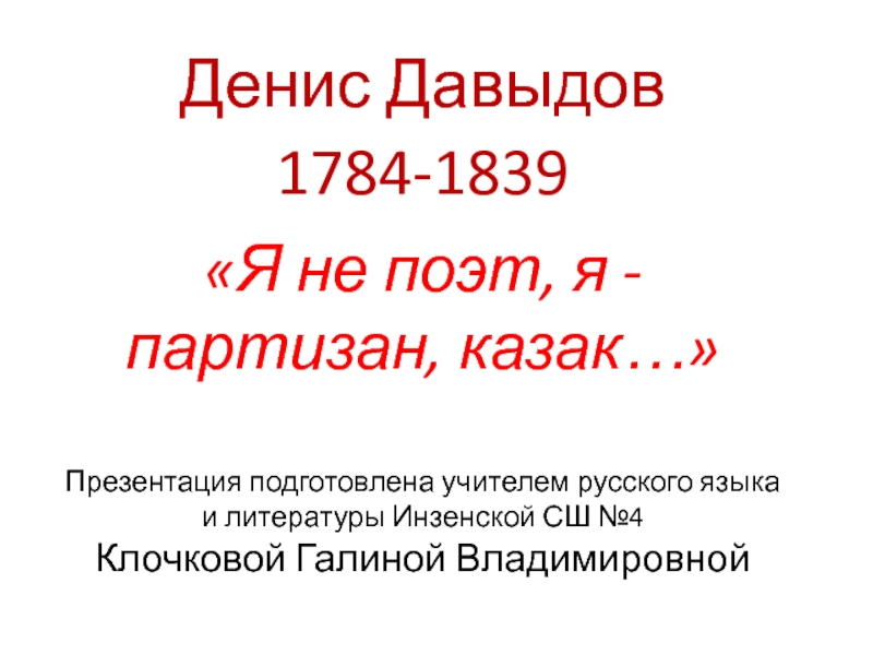 Слайд 1«Я не поэт, я - партизан, казак…»