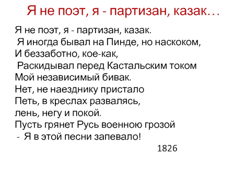 Я не поэт, я - партизан, казак…