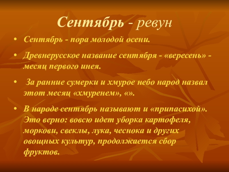 За ранние сумерки и хмурое небо народ назвал этот месяц «хмуренем», «».