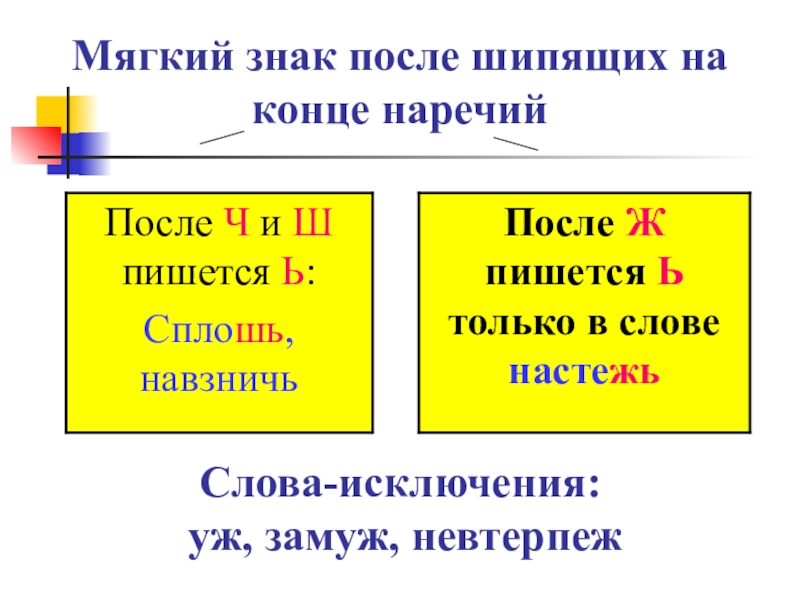Слайд 24Мягкий знак после шипящих на конце наречий