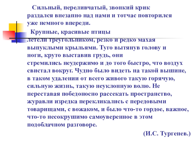Слайд 33Сильный, переливчатый, звонкий крик раздался внезапно над нами и тотчас повторился уже немного впереди.