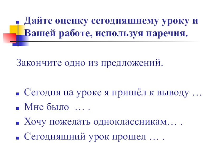 Сегодня на уроке я пришёл к выводу …
