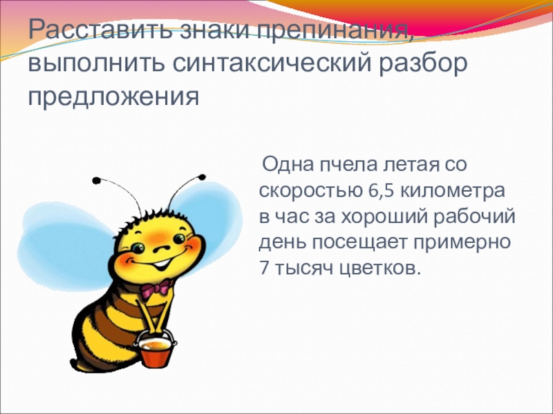 Одна пчела летая со скоростью 6,5 километра в час за хороший рабочий день посещает примерно 7 тысяч цветков.