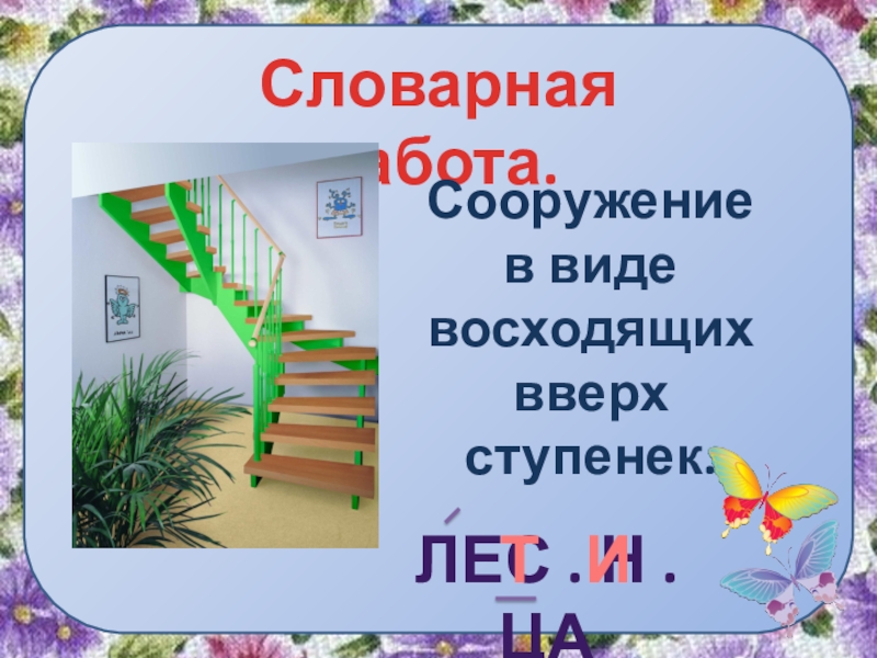 Словарная работа.Сооружение в виде восходящих вверх ступенек.Лес . Н . цаТИ