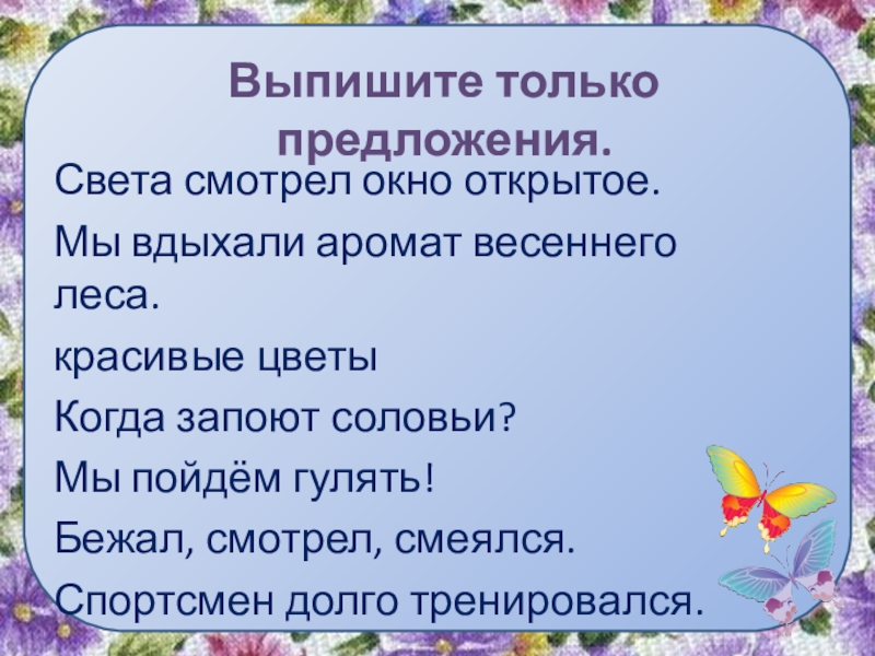 Слайд 12Выпишите только предложения.