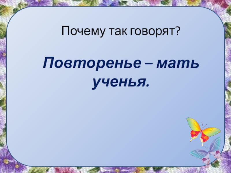 Слайд 2Почему так говорят? Повторенье – мать ученья.