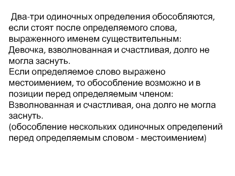 Слайд 10 Два-три одиночных определения обособляются, если стоят после определяемого слова, выраженного именем существительным: