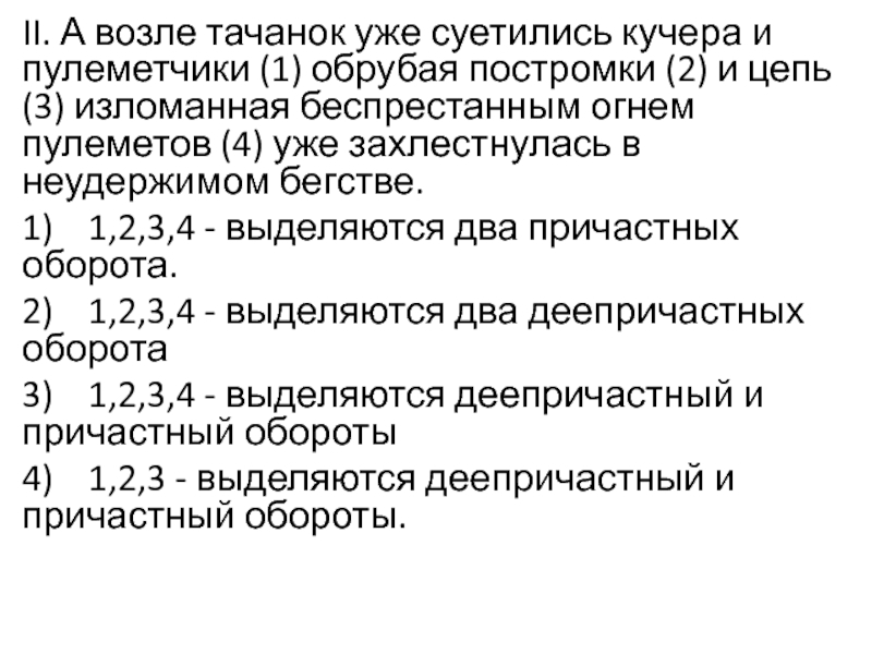 Слайд 42II. Α возле тачанок уже суетились кучера и пулеметчики (1) обрубая