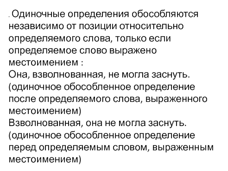 Слайд 9. Одиночные определения обособляются независимо от позиции относительно определяемого слова, только