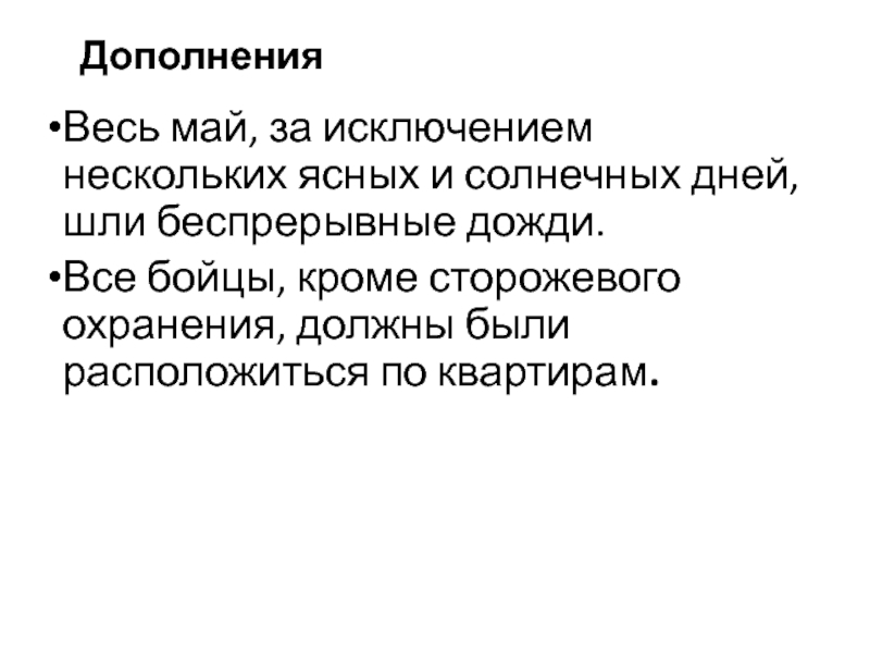 Все бойцы, кроме сторожевого охранения, должны были расположиться по квартирам.