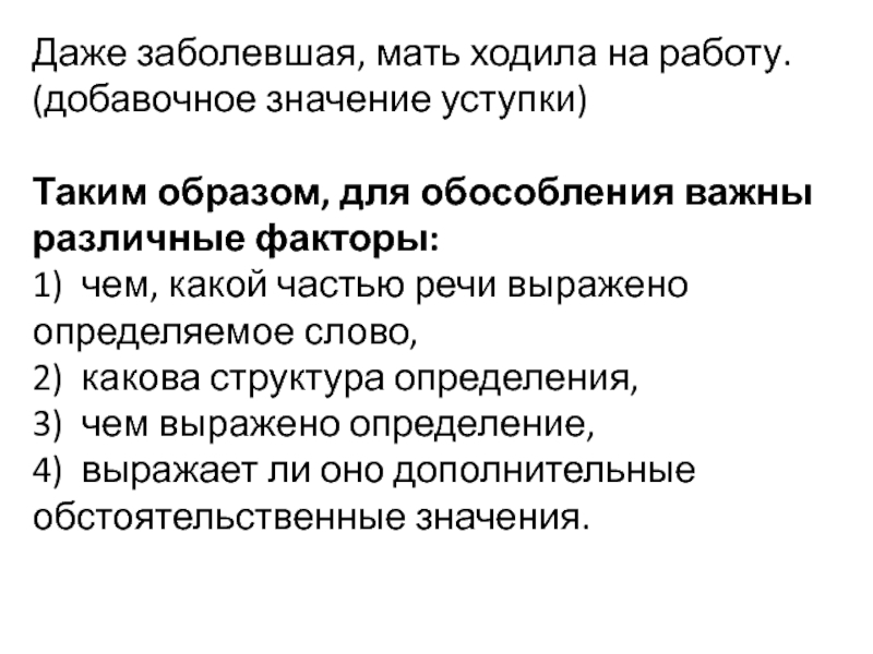 Слайд 15Даже заболевшая, мать ходила на работу.