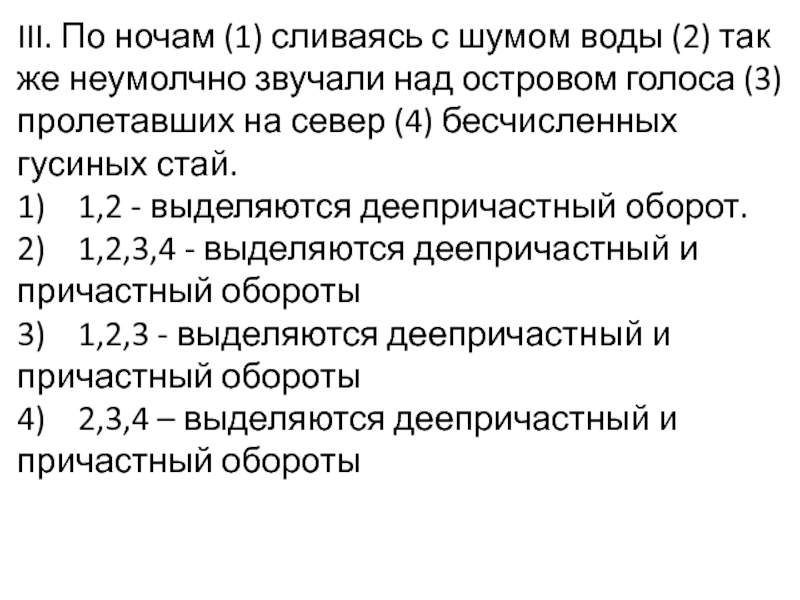 Слайд 43III. По ночам (1) сливаясь с шумом воды (2) так же
