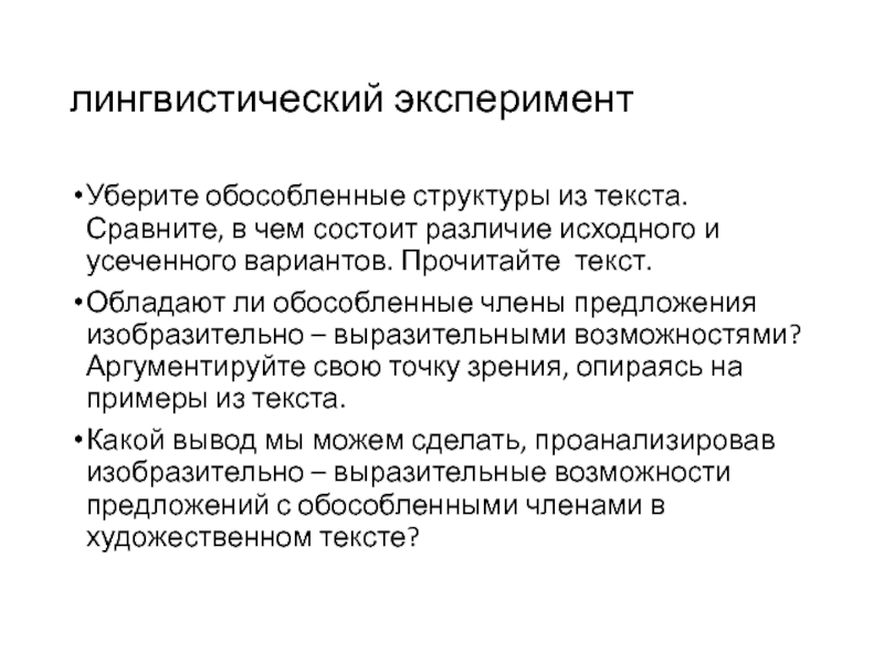 Уберите обособленные структуры из текста. Сравните, в чем состоит различие