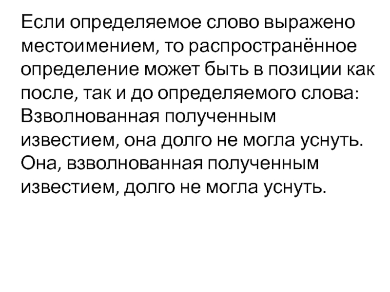 Слайд 12Если определяемое слово выражено местоимением, то распространённое определение может быть в