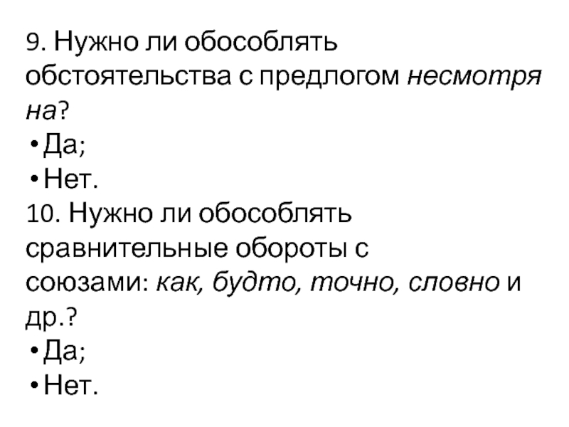 Слайд 369. Нужно ли обособлять обстоятельства с предлогом несмотря на?